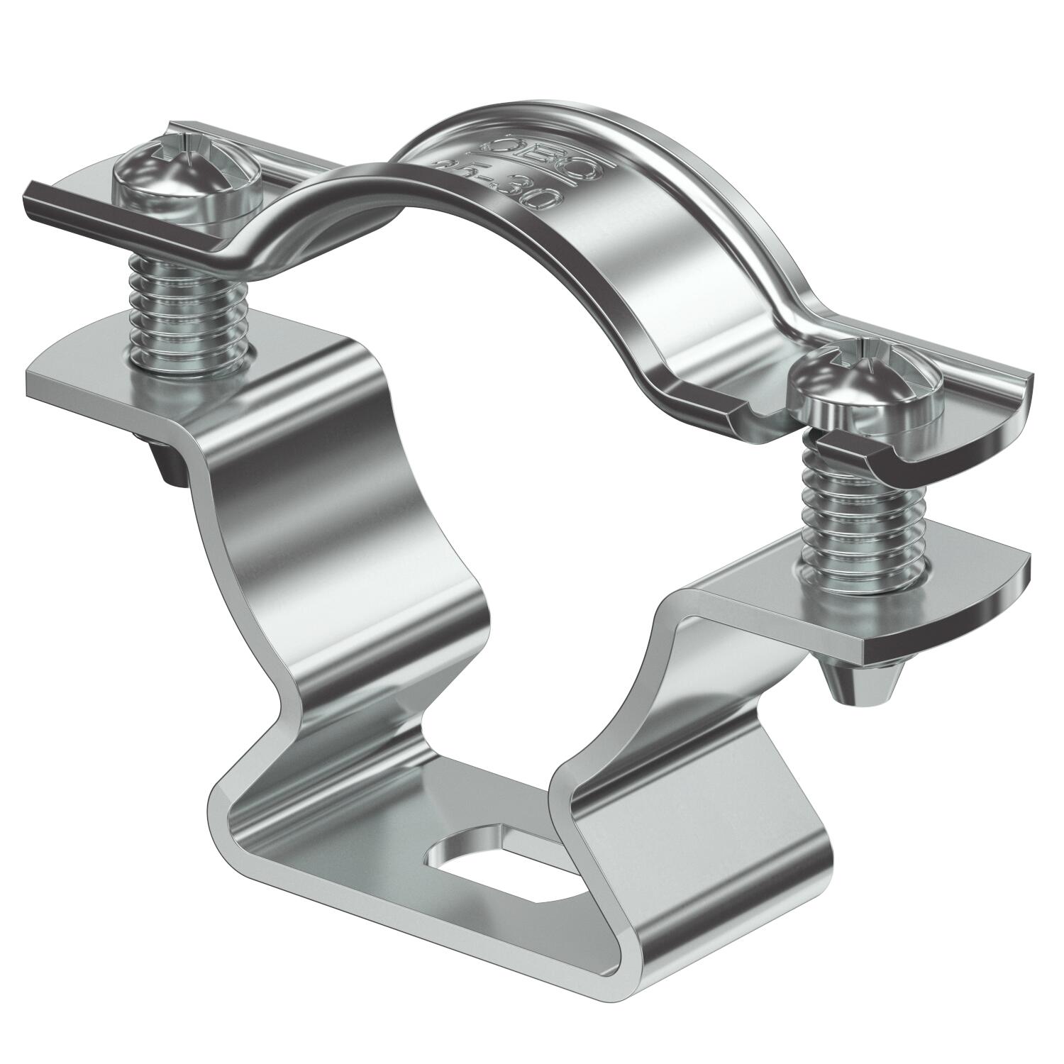Clamping range D, max. 30 mm Clamping range D, min. 25 mm CO2 Footprint (GWP) Cradle-to-Gate 0,2321 kg CO2e / 1 Piece Dimension 25-30mm Dimension A 59 mm Dimension b 16 mm Dimension B 45 mm Dimension D 30 mm Dimension d max. 30 mm Dimension d min. 25 mm Dimension L 10 mm Dimension s 16,5 mm Dimension t1 (mm) 1,5 Dimension t2 (mm) 1,5 Dimension x 7,5 mm Distance to the wall yes Fastening type Screw hole For diameter 25 - 30 Halogen-free yes Material Aluminium Material thickness 1,5 mm Number of cables/pipes 1 Plastic-covered no UV-resistant yes Version for Closed - All types