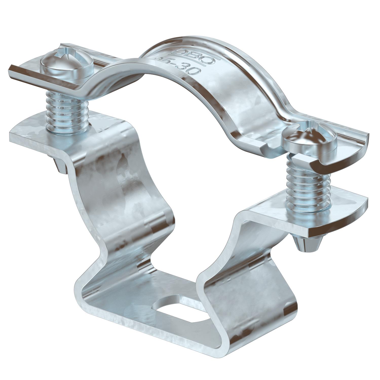 Clamping range D, max. 30 mm Clamping range D, min. 25 mm CO2 Footprint (GWP) Cradle-to-Gate 0,1019 kg CO2e / 1 Piece Dimension 25-30mm Dimension A 59 mm Dimension B 45 mm Dimension b 16 mm Dimension D 30 mm Dimension d max. 30 mm Dimension d min. 25 mm Dimension L 10 mm Dimension s 16,5 mm Dimension t1 (mm) 1,5 Dimension t2 (mm) 1,5 Dimension x 7,5 mm Distance to the wall yes Fastening type Screw hole For diameter 25 - 30 Halogen-free yes Maintain electrical functions yes Material Steel Material thickness 1,5 mm Number of cables/pipes 1 Plastic-covered no Surface Hot-dip galvanised UV-resistant yes Version for Closed - All types
