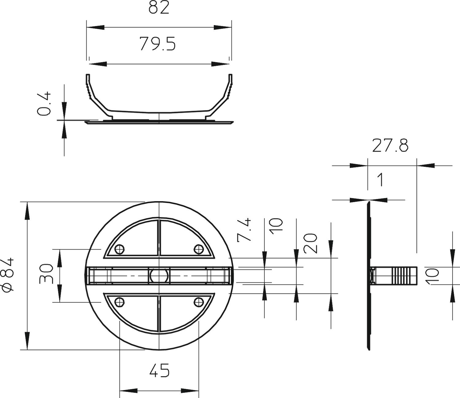 Product descriptionSprung cover with centrally moulded, elastic spreading spring, for sockets with Ø 70 mm, cover edge is flush, surface is roughened.