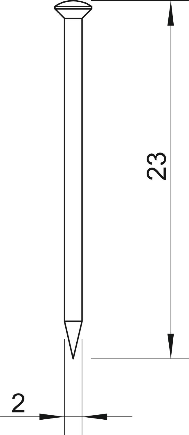 Dimension 2x23mm Dimension d 2 mm Dimension L 23 mm Hardened yes Head shape Rounded head Length 23 mm Material Steel Screw nail version no Shank diameter 2 mm Surface Bright Version for Nail - All types