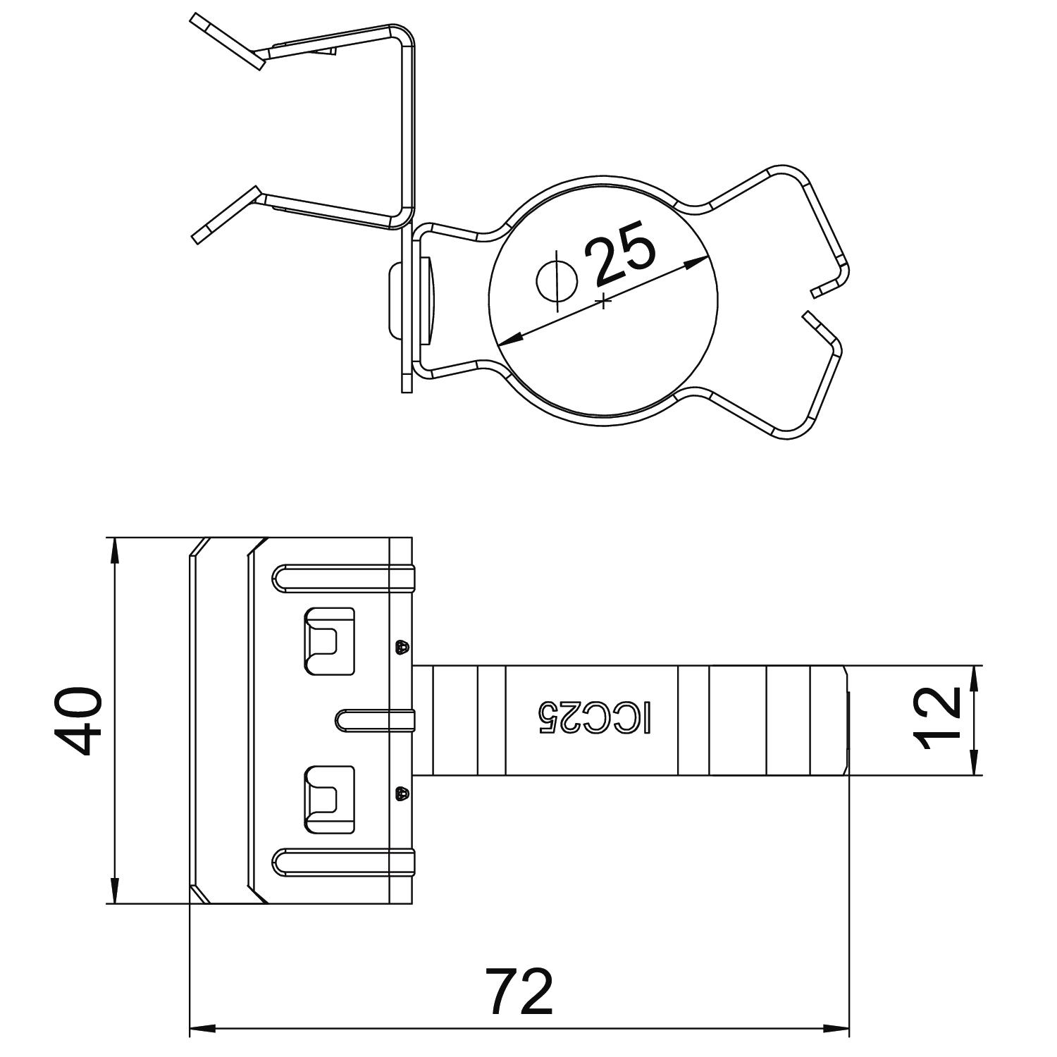 Breaking load 0,45 kN Colour zinc Connection type/component Pipe/cable Dimension 15-20mm Dimension L 72 mm Dimension W 40 mm Fastening type Clamp Flange thickness F max. 20 mm Flange thickness F min. 15 mm Height 47 mm Hinge, adjustable no Hinged no Length 72 mm Material Steel Pipe/cable diameter, max. 25 mm Pipe/cable diameter, min. 20 mm Surface Zinc slat Width 40 mm - All types