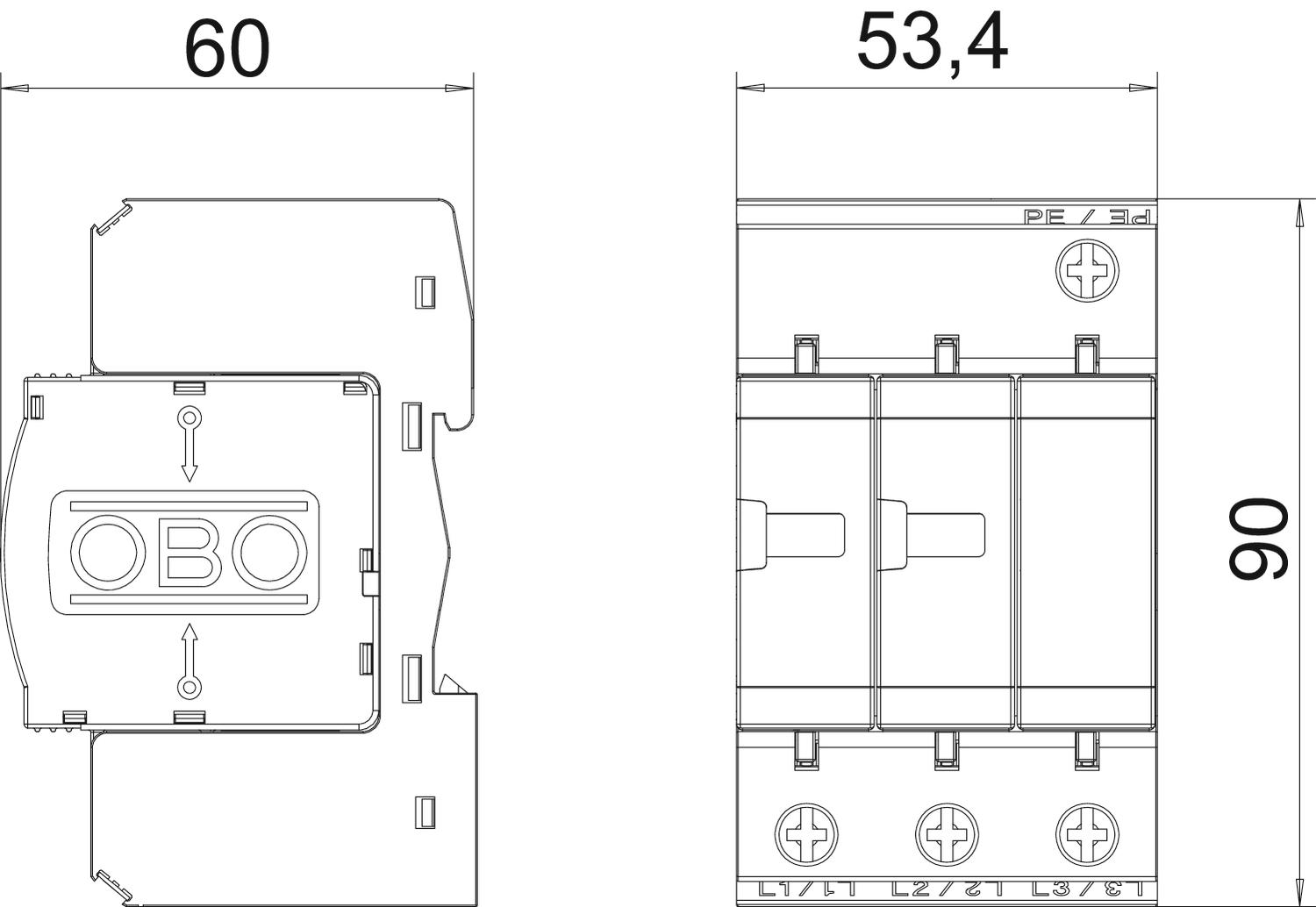Arrester surge current (8/20 µs) [total] 60 kA Blow-out no CO2 Footprint (GWP) Cradle-to-Gate 1,3743 kg CO2e / 1 Piece Conductor cross-section, rigid (single-wire/multiwire), max. 35 mm² Conductor cross-section, rigid (single-wire/multiwire), min. 2,5 mm² Dimension 280V Installation type DIN rail 35 mm Integrated back-up fuse no Lightning protection zone LPZ 1→2 Max. mains-side overcurrent protection 125 Maximum back-up fuse 125 A Maximum continuous voltage AC 280 V Maximum discharge current (8/20 μs) 40 kA Network form Other Nominal discharge current (8/20 µs) 20 kA Nominal discharge current (8/20 µs) [L-N] 20 kA Nominal voltage AC (50/60 Hz) 230 V Operating temperature, max. 80 °C Operating temperature, min. -40 °C Permitted temperature range, max. 80 °C Permitted temperature range, min. -40 °C Pole version 2+N/PE Protection rating IP20 Remote signalling no Response time <25 ns Signalling on device Visual SPD to EN 61643-11 Type 2 SPD to IEC 61643-1 Class II Test class, type 2 yes Version for 2+NPE - All types