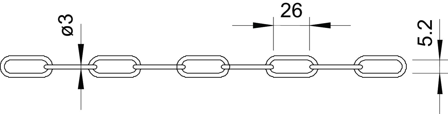 Breaking load 0,7 kN Dimension 25x5,2mm Dimension L 25000 mm Material Steel Material thickness 3 mm Surface Electrogalvanized Version for Linked chain Width 11,2 mm - All types