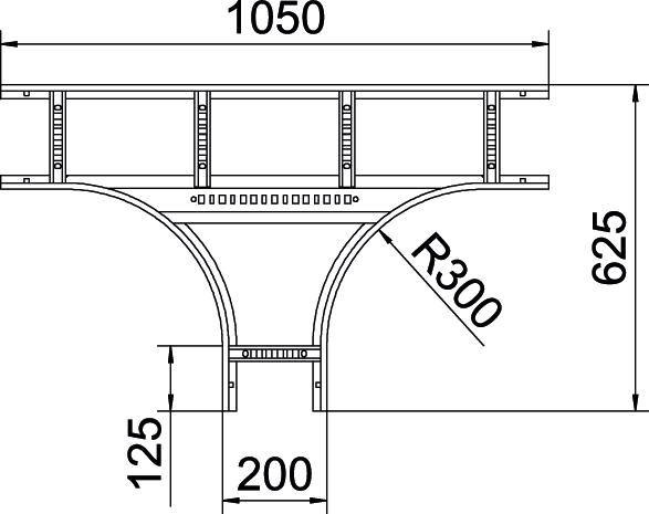 Product descriptionT piece, horizontal, with welded rung for all cable ladder types of 60 mm side height.