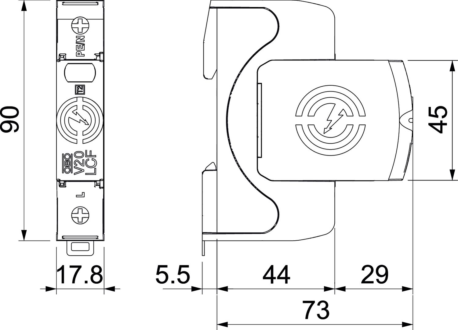 • Discharge capacity to 30 kA (8/20) per pole through a high-performance series connection of varistor and spark gap