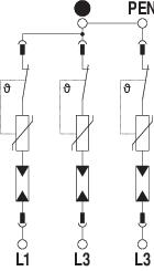 • Discharge capacity to 30 kA (8/20) per pole through a high-performance series connection of varistor and spark gap