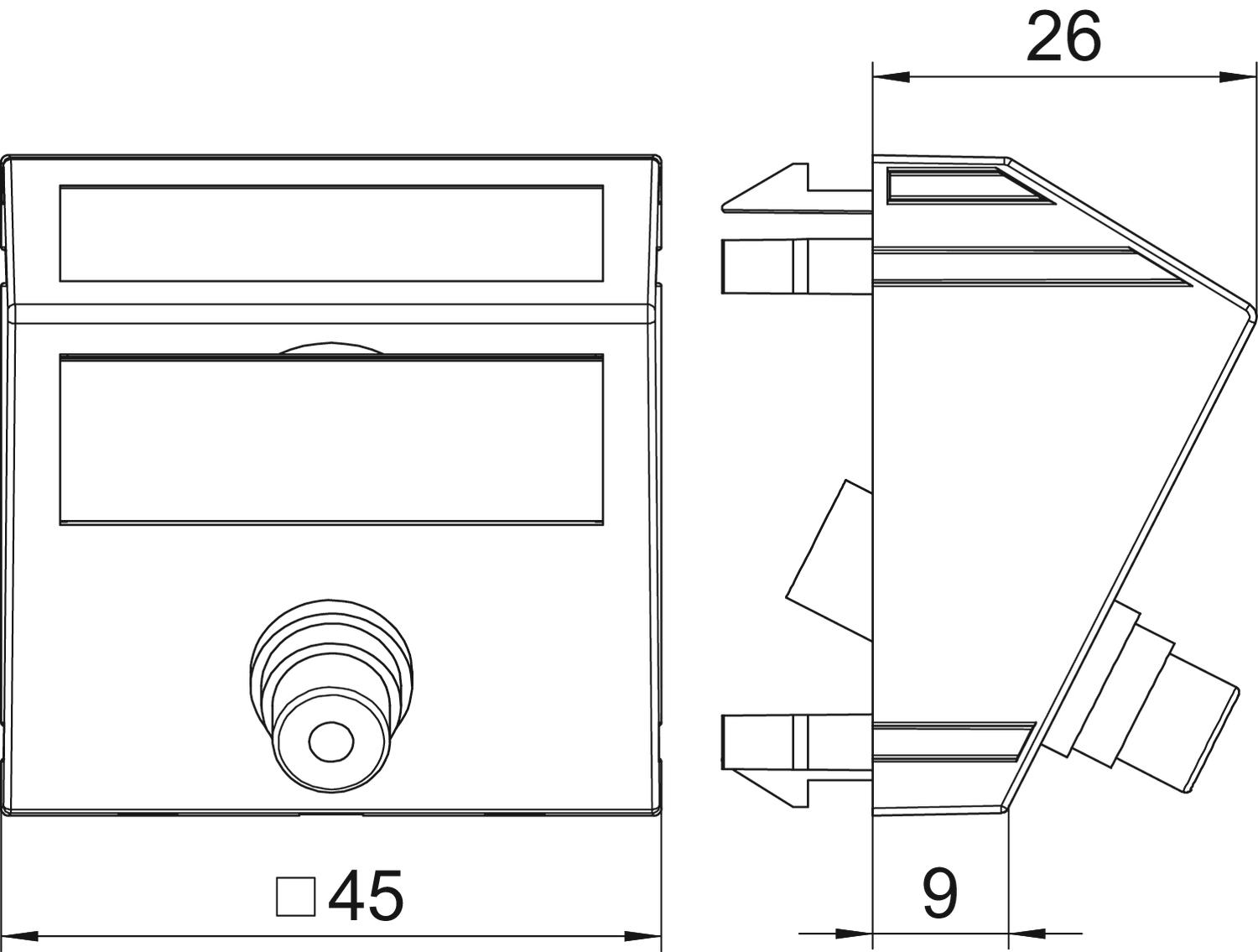 CO2 Footprint (GWP) Cradle-to-Gate 0,2356 kg CO2e / 1 Piece Colour Black-grey; RAL 7021 Combination Basic element with central cover plate Depth 26 mm Dimension 45x45mm Fastening type Lock Halogen-free yes Height 45 mm Hinged cover no Lamp-wire connector no Material Polycarbonate Number of units 1 Outlet direction Sloping Protection rating IP20 Strain relief option no Support ring no Surface version Matt Transparent no Use Cinch Width 45 mm With dust protection no With printed label no - All types