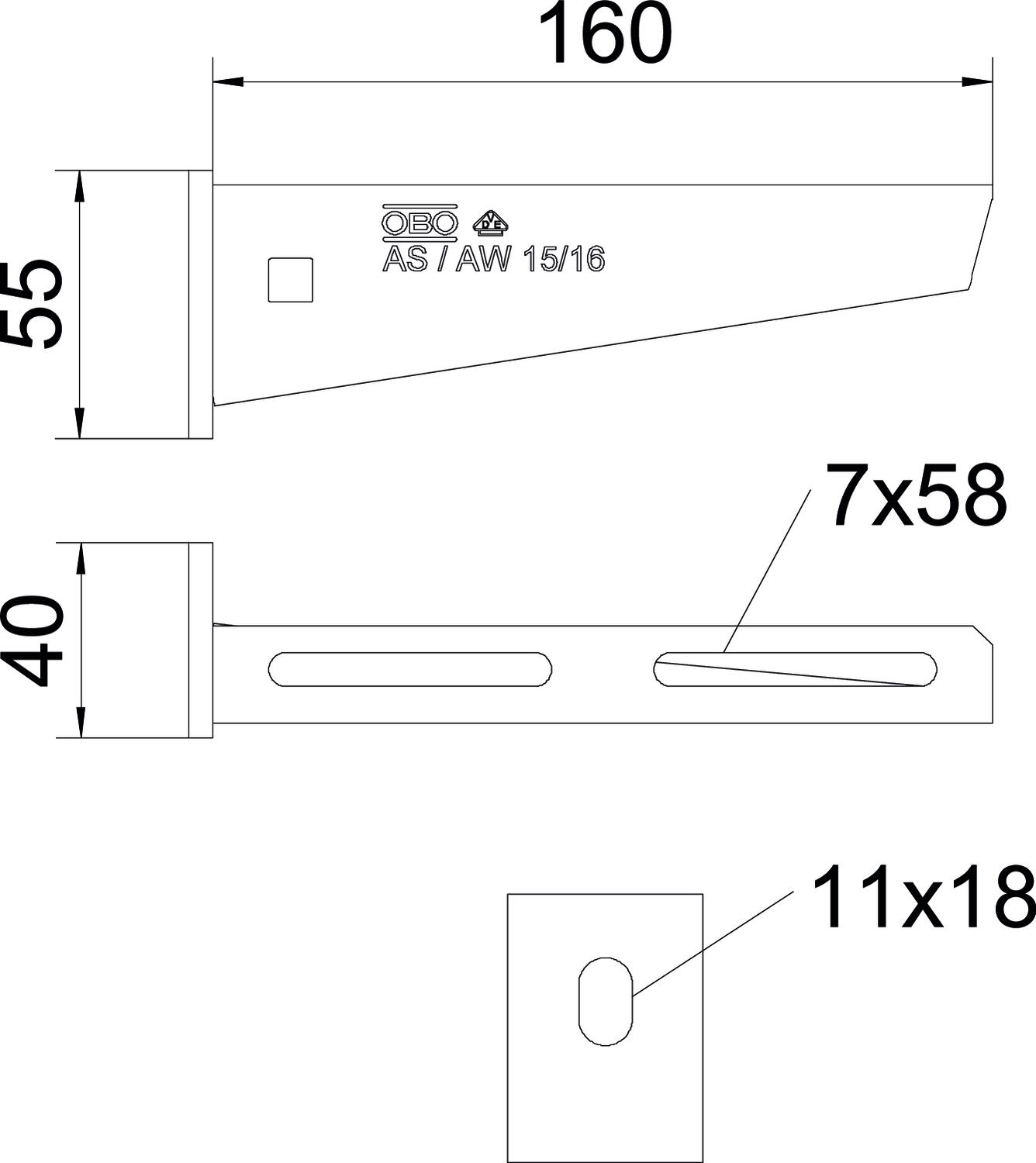 Angle range, max. 90 mm Angle range, min. 90 mm CO2 Footprint (GWP) Cradle-to-Gate 0,4647 kg CO2e / 1 Piece Colour zinc Dimension B160mm Dimension A 40 mm Dimension B 160 mm Dimension H 55 mm Dimension W 160 mm EPD article yes F in kN 1,5 kN Height 55 mm Height 2,17 in Hole diameter 11 mm Length 40 mm Maintain electrical functions yes Material Steel Rustproof steel, pickled no Surface Hot-dip galvanised Version for Wall and support bracket Width 160 mm Width 6 in Technical data