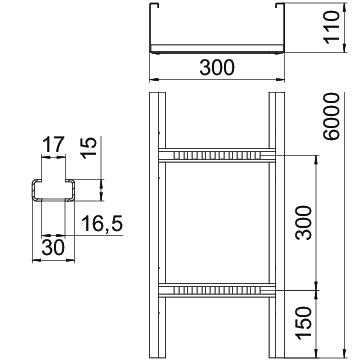 CO2 Footprint (GWP) Cradle-to-Gate 29,4486 kg CO2e / 1 Meter Colour stainless steel Dimension 110x300x6000 Dimension 110x300 Dimension B 300 mm Dimension L 6000 mm Fastening of rung Fully riveted Height 110 mm Length 6000 mm Maintain electrical functions no Material Stainless steel 1.4301 Rail thickness 2 mm Rung slot dimension 17,00 Rustproof steel, pickled no Side perforation yes Side rail version Profile (open) Support spacing 3.0 m 2,3 kN/m Support spacing 3.5 m 1,9 kN/m Support spacing 4.0 m 1,6 kN/m Support spacing 4.5 m 1,33 kN/m Support spacing 5.0 m 1,1 kN/m Support spacing 6.0 m 0,8 kN/m Support spacing 7.0 m 0,4 kN/m Surface Bright, treated Usable cross-section 28100 mm² Usable cross-section 281 cm² Version of the rungs Profile perforated Wide-span version yes Width 300 mm Technical data