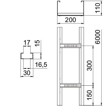 CO2 Footprint (GWP) Cradle-to-Gate 13,5242 kg CO2e / 1 Meter Colour zinc Dimension 110 x 200 Dimension 110x200x6000 Dimension B 200 mm Dimension L 6000 mm Fastening of rung Fully riveted Height 110 mm Length 6000 mm Maintain electrical functions no Material Steel Rail thickness 2 mm Rung slot dimension 17,00 Rustproof steel, pickled no Side perforation yes Side rail version Profile (open) Support spacing 3.0 m 2,5 kN/m Support spacing 3.5 m 1,98 kN/m Support spacing 4.0 m 1,6 kN/m Support spacing 4.5 m 1,31 kN/m Support spacing 5.0 m 1,1 kN/m Support spacing 6.0 m 0,8 kN/m Support spacing 7.0 m 0,4 kN/m Surface Strip galvanized Usable cross-section 18600 mm² Usable cross-section 186 cm² Version of the rungs Profile perforated Wide-span version yes Width 200 mm Technical data