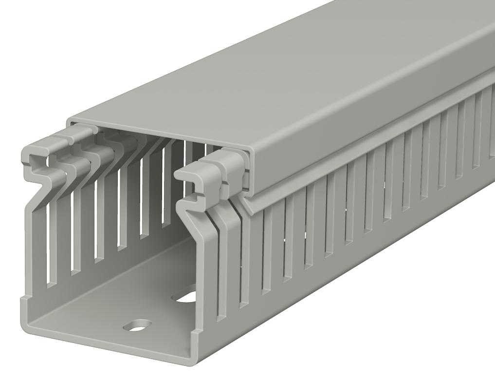 Product descriptionWiring duct, incl. cover and base perforation, for horizontal and vertical routing of electrical cables in the switchgear cabinet. Designed as a metric duct. The nominal dimension of the system size corresponds to the internal dimension of the duct. Retainers are broken out without tools. The flush-floor routing of cables is possible through predetermined break points. Tested to DIN EN 50085-2-3. Special lengths on request.