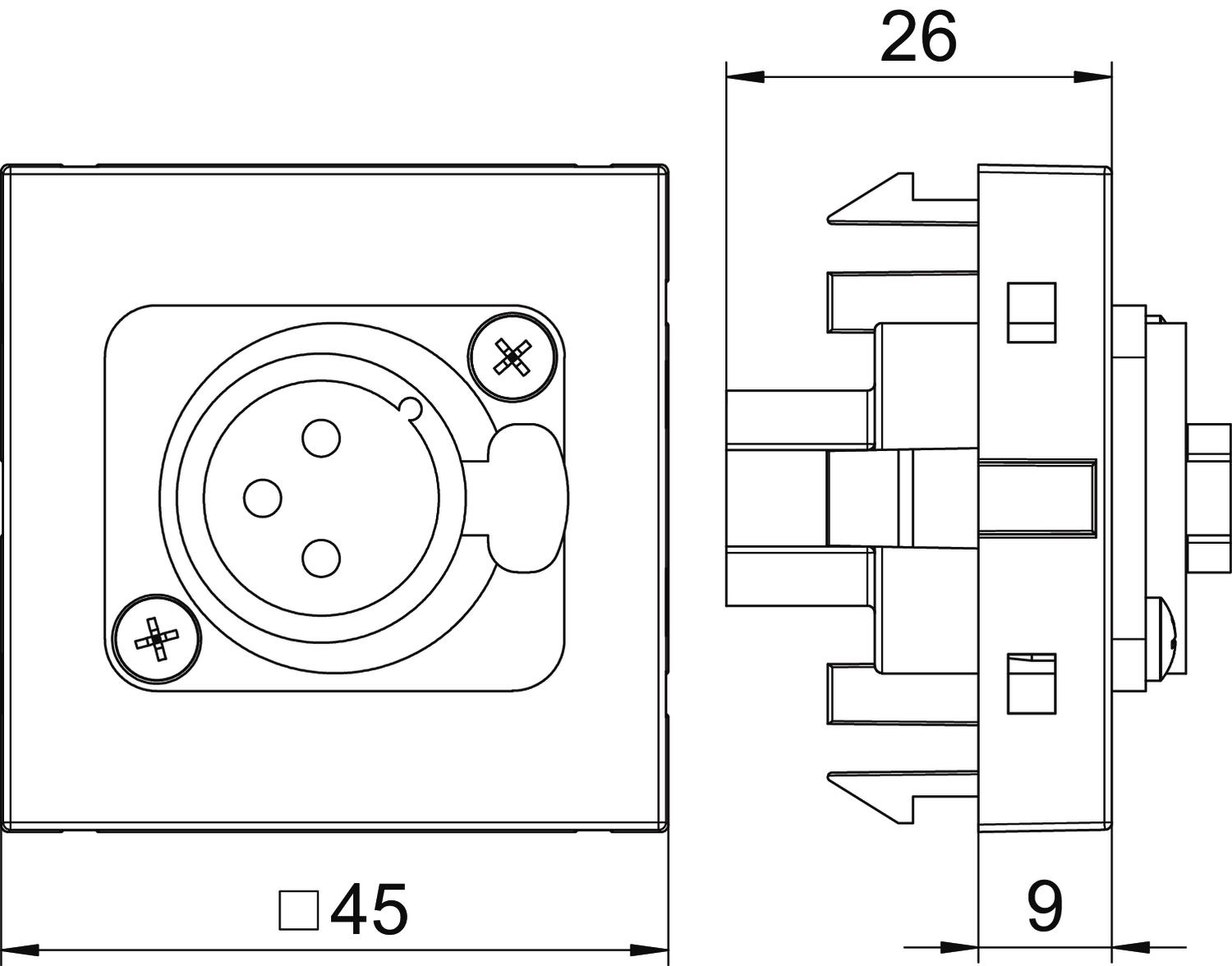 Product descriptionMultimedia support with one XLR connection socket, straight cable outlet, without labelling panel, 3-pin XLR socket with screw connection. Support plate with locking fastening, suitable for horizontal and vertical installation in the system environment.