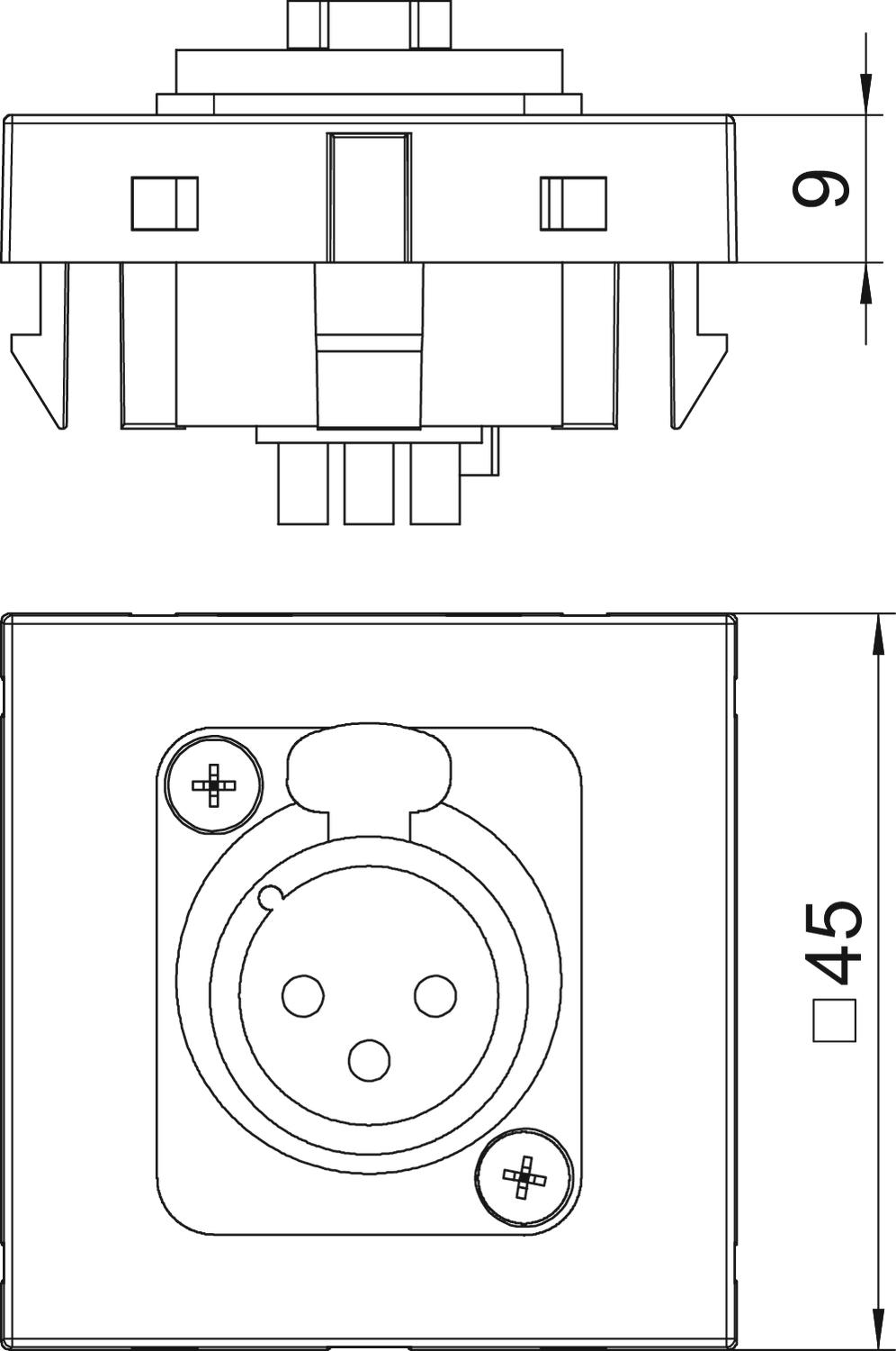 CO2 Footprint (GWP) Cradle-to-Gate 0,1555 kg CO2e / 1 Piece Colour Black-grey; RAL 7021 Combination Basic element with central cover plate Depth 9 mm Dimension 45x45mm Fastening type Lock Halogen-free yes Height 45 mm Hinged cover no Labelling panel With labelling panel Lamp-wire connector no Material Polycarbonate Outlet direction Straight Protection rating IP20 Strain relief option no Support ring no Surface version Matt Transparent no Use XLR Width 45 mm With dust protection no With printed label no - All types