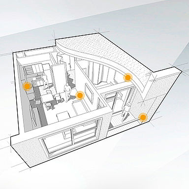 Cable routing and underfloor systems for administrative and functional buildings including architectural solutions
