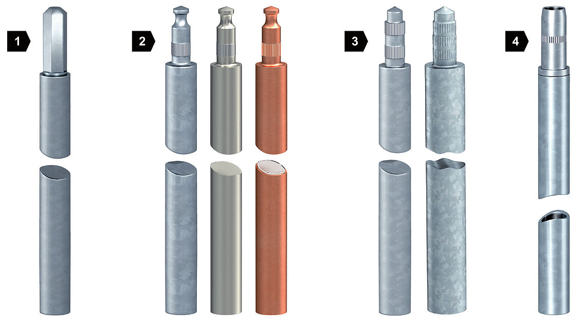 Za oba slučaja, OBO u svom asortimanu ima odgovarajuće vertikalne uzemljivače od Ø20 mm ili Ø25 mm, žice od Ø10 mm i trake različitih dimenzija, na primer 30 x 3,5 mm ili 40 x 4 mm.