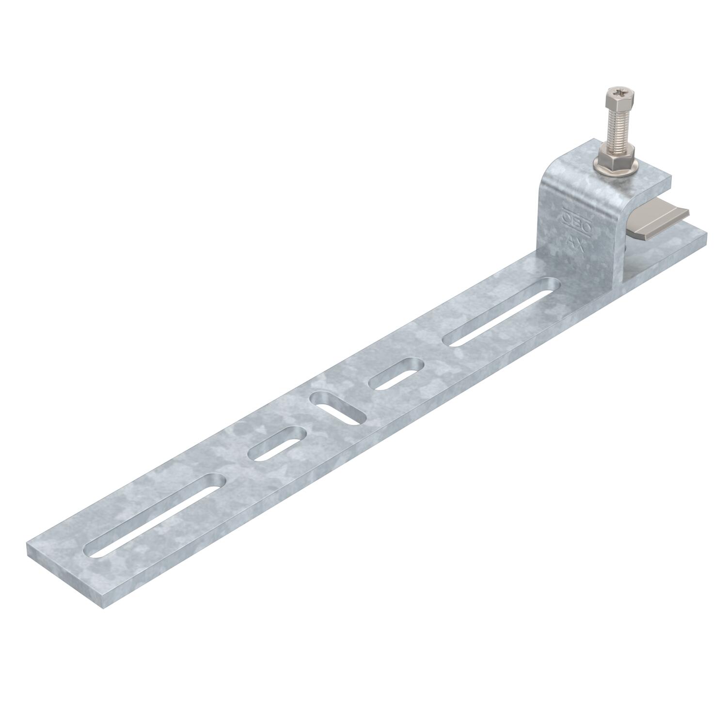 Opis proizvodaBeam clamp for mounting light components on horizontal steel beams. Suitable, for example, for mesh cable trays and cable trays to 300 mm width or clips. The direction of the cable support system attached to the beam clamp is horizontal.
