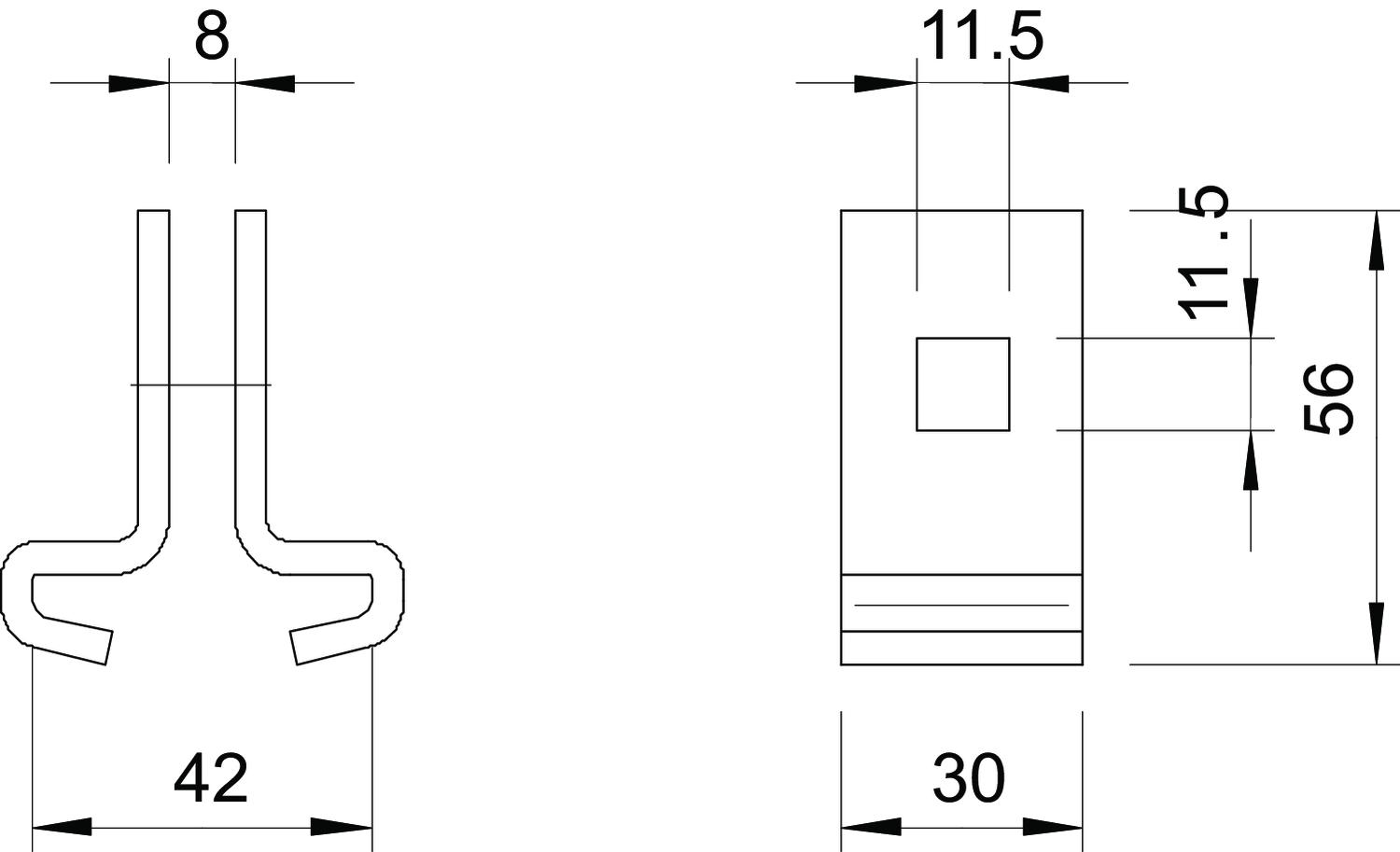 Opis proizvodaČeljust nosača sa torban vijkom FRS M10 x 25 za montažu na IS 8-nosač.