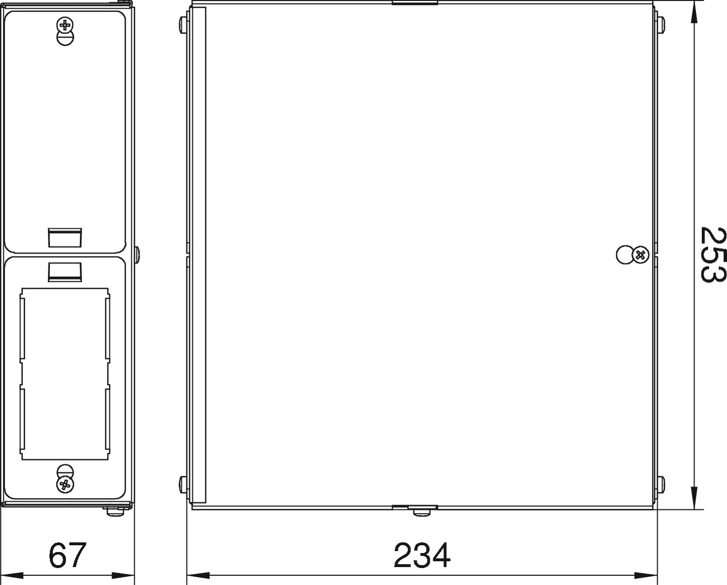 Opis proizvodaConsolidation Point prazno kućište za ugradnju 4 Modul 45® uređaja, sastoji se od donjeg dela kućišta i poklopca, pokopca za razdvajanje računarske tehnike i jake struje, 2 ploče nosača za ugradnju po 2 Modul 45® uređaja, 2 maskirne ploče, 2 kablovske uvodnice V-TEC VM25 LGR i jednog priključnog ugaonika za zaštitni provodnik.