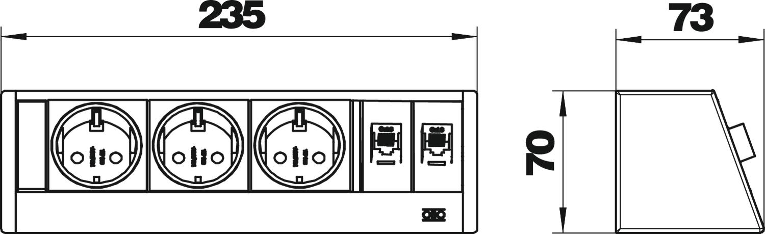 Boja aluminijum Broj priključaka CAT 6 2 Broj ŠUKO-utičnica 3 Dužina 235 mm Dužina dovoda 3 m Materijal Aluminijum Može da se izvuče ne Preklopivo po visini ne Varijanta Kućište u boji srebra eloksirano Visina 70 mm Zaštita od prenapona ne - Svi tipovi