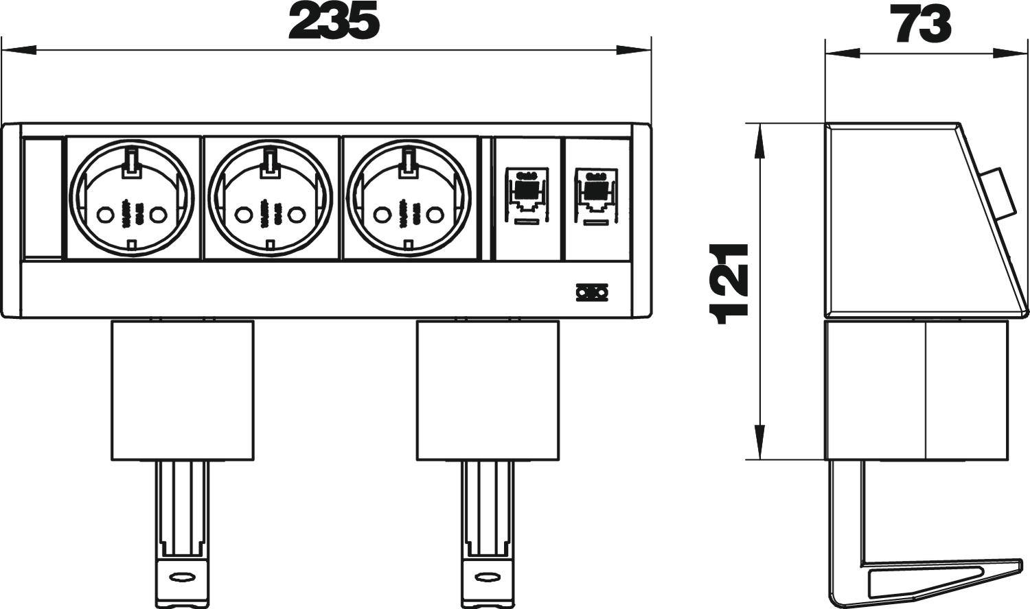 Opis proizvodaDeskbox sa priključnim kablom, izlazom za kabal sa donje strane, sa dve pričvrsne stezaljke za debljine stola od 8 do 40 mm.