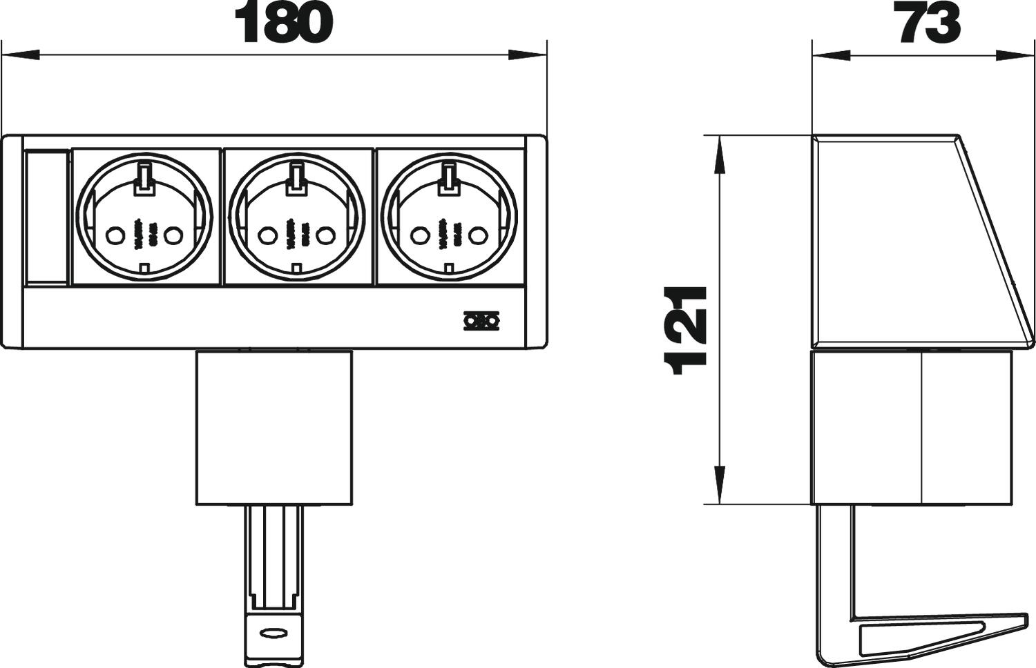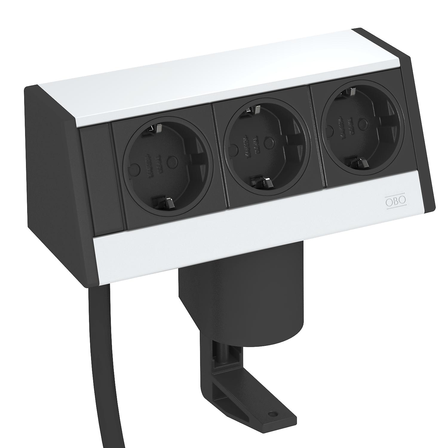 Opis proizvodaDesk-boks sa priključnim kablom, izlaz za kabl odozdo iz profila, pomoću pričvrsne stege za debljine ploče stola od 8 do 40 mm.