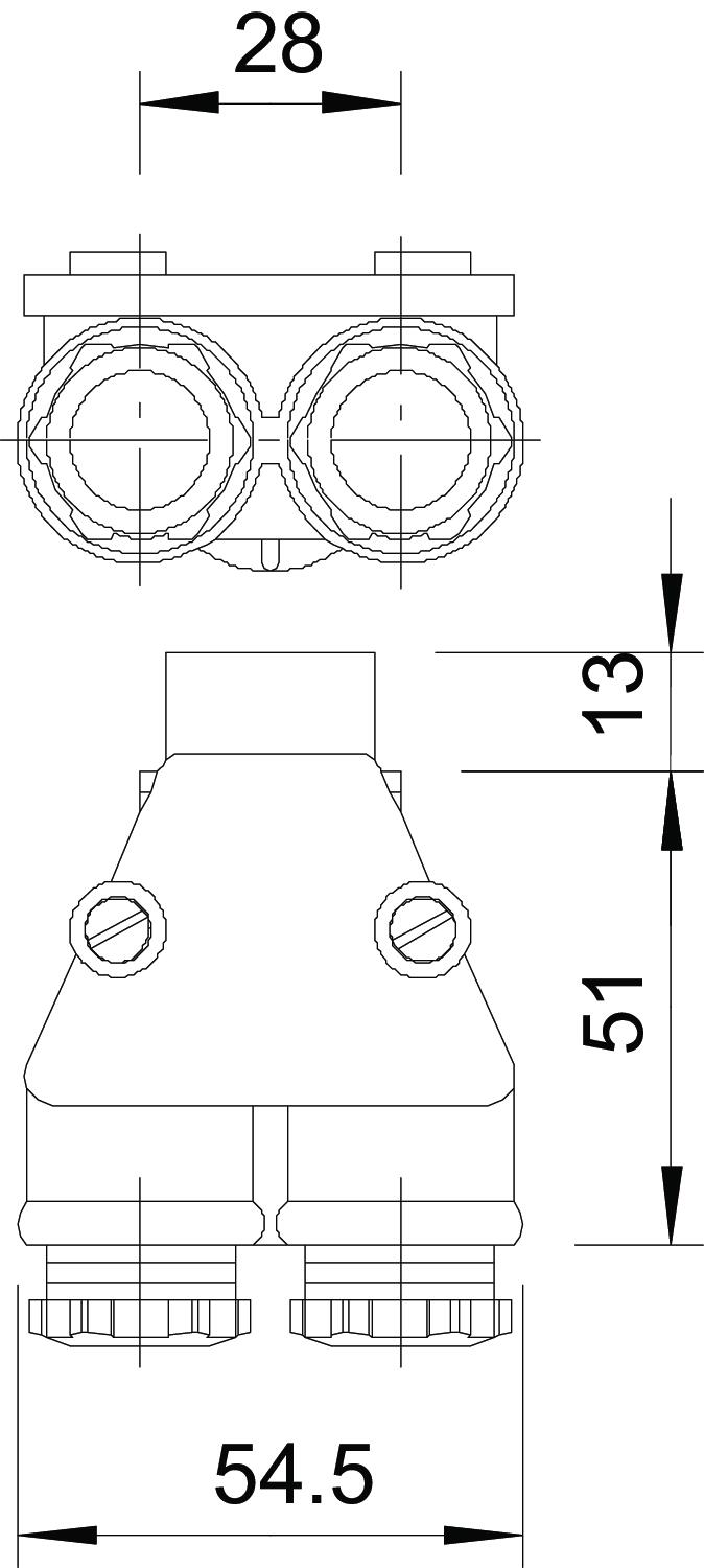 Sa priključnim navojem M20 x 1,5, 2 polunavojne spojnice PG 13,5 za kablove prečnika 6,5-10,5 mm.