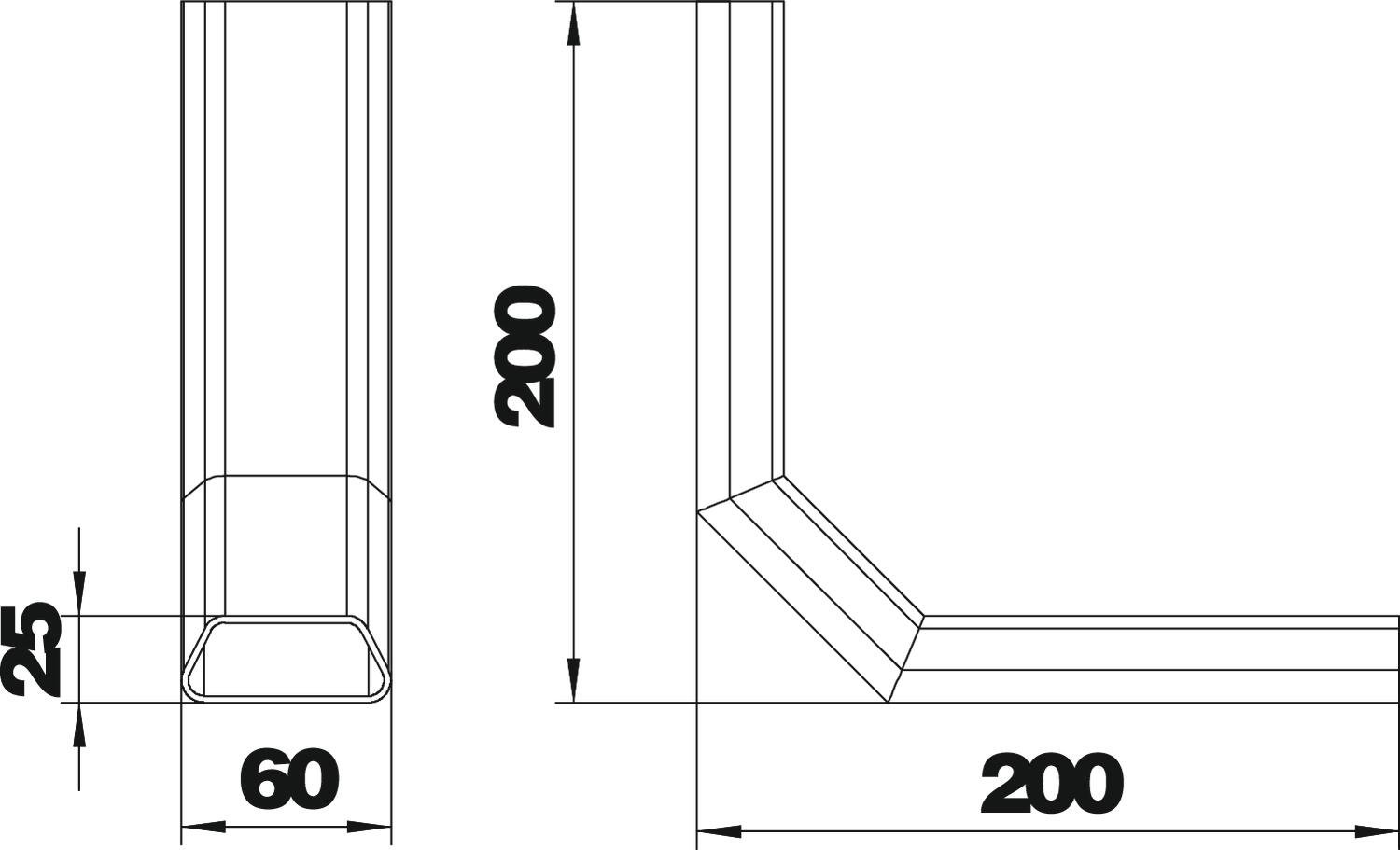 Opis proizvodaVertikalna krivina za promenu pravca za 90°, odgovara za veličine kanala 60x25.