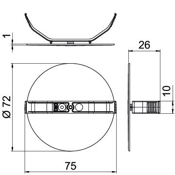 bez halogena da Boja crna Dimenzija Ø72 Dužina 75 mm Materijal Polistirol Mogućnost plombiranja ne Oblik okruglo Prečnik 60 mm Sa vijcima ne samogasiv Prema VDE 0471/DIN 695 deo 2-1, temperatura testiranja 650°C Širina 72 mm Visina 26 mm Vrsta pričvršćivanja Opružni poklopac - Svi tipovi