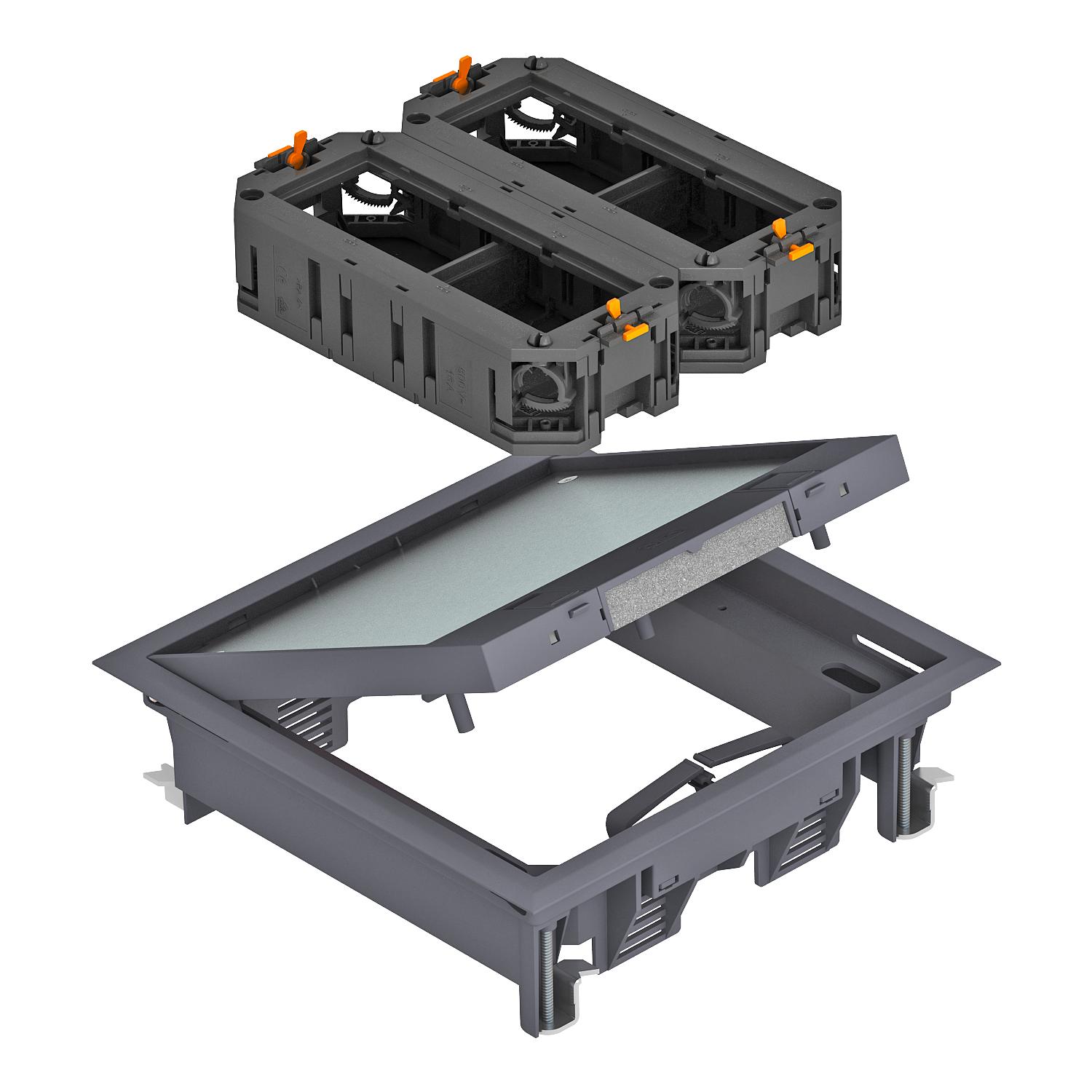 Opis proizvodaPodna kutija sa svim neophodnim sistemskim dodacima za direktnu ugradnju u podove od betonske košuljice u zatvorenom.