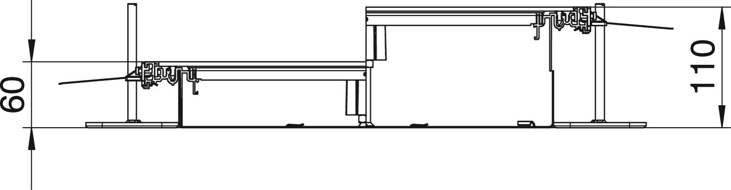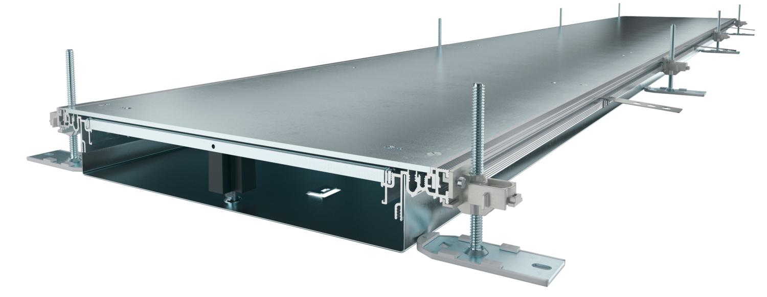 Opis proizvodaZa montažu spremna jedinica kanala sa 3 samouklopna slepa poklopca za sprovođenje kablova, sastoje se od donjeg dela kanala (podno korito sa bočnim i priključnim profilom podne obloge) i poklopca kanala. Podno korito sa vezicama za samokontaktnu montažu pregrada. U obimu isporuke sadržano je 6 pričvrsnih ugaonika sa nivelacijom po visini, 6 vijaka za košuljicu i zaptivke za spojeve poklopaca sa nivelacijom po visini (3 kom. kod jedinica kanala 200 i 300) ili udarne potpore poklopaca: 3 kom. kod širine kanala 400 i 6 kom. kod širine kanala 500 i 600. Poklopac je zašrafljen pre isporuke, uklopni elementi montirani.