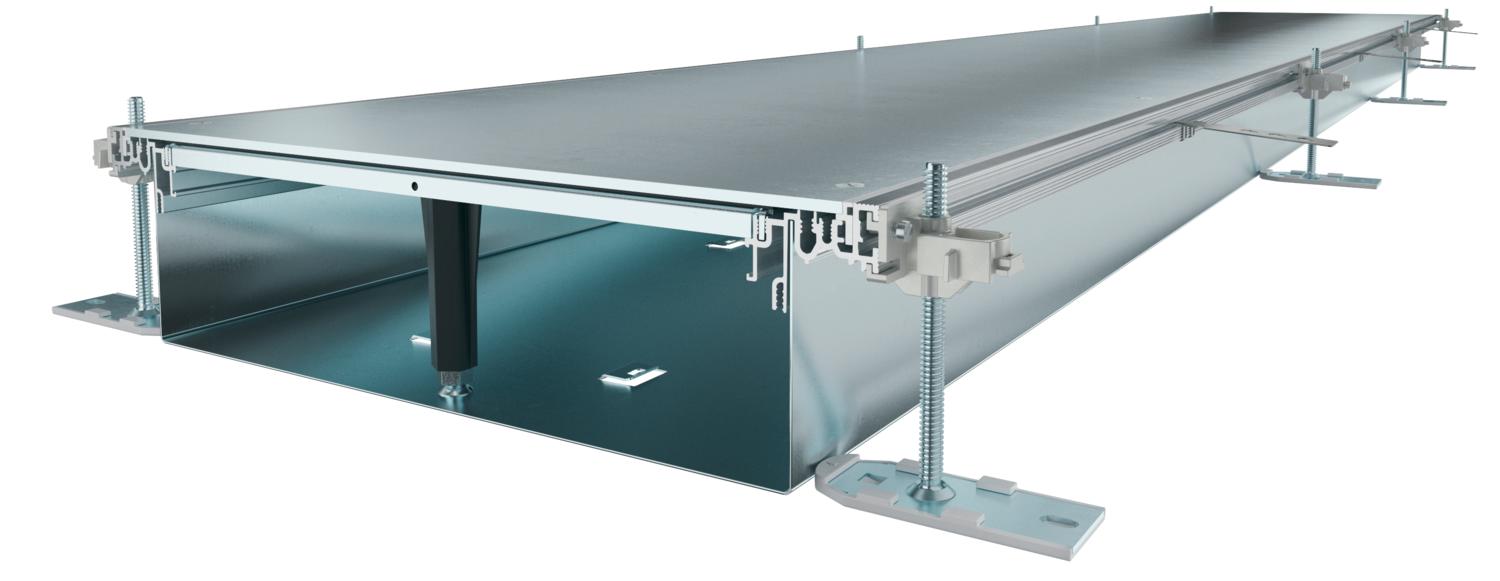 Opis proizvodaZa montažu spremna jedinica kanala sa 3 slepa poklopca za sprovođenje kablova, sastoji se od donjeg dela kanala (podno korito sa bočnim i priključnim profilom podne obloge) i poklopca kanala. Podno korito sa vezicama za samokontaktnu montažu pregrada. U obimu isporuke sadržano je 6 pričvrsnih ugaonika sa nivelacijom po visini, 6 vijaka za košuljicu i zaptivke poklopaca sa nivelacijom po visini (3 kom. kod jedinica kanala 200 i 300) ili udarnom potporom poklopca sa nivelacijom: 3 kom. kod širine kanala 400 i 6 kom. kod širine kanala 500 i 600. Poklopac je zašrafljen pre isporuke.