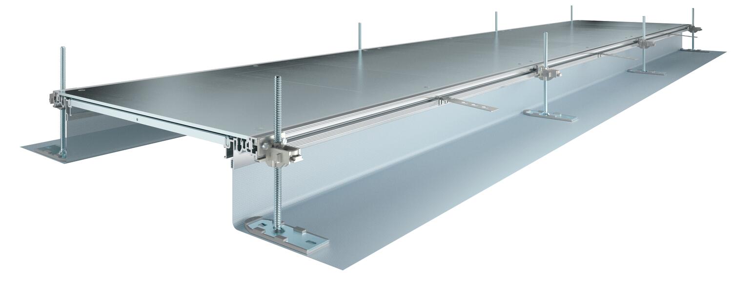 Opis proizvodaZa ugradnju gotova kanalna jedinica u ravni sa košuljicom za instalaciju kablova, sastoji se od 3 sistemska poklopca, dva bočna profila sa pričvršćenim fleksibilnim bočnim zidom od metalne mreže, profila za pričvršćivanje podne obloge H = 3 mm. Za suve unutrašnje prostorije sa suvim održavanim podovima. Sa odgovarajućim sistemskim priborom pogodan i za podove sa mokrim čišćenjem. Opseg isporuke uključuje 6 montažnih nosača podesivih po visini, 6 ankera za košuljicu i 3 zaptivača spojnica za širine kanala od 200, 300 i 400 ili 6 nosača za spojnice za širine kanala od 500 i 600. Apsolutno neophodne jedinice za nivelisanje (obratite pažnju na visinu nivelacije) za podupirače poklopca 400, 500 i 600 nisu uključene u obim isporuke, molimo naručite posebno. Poklopci kanala su prilikom isporuke zašrafljeni.