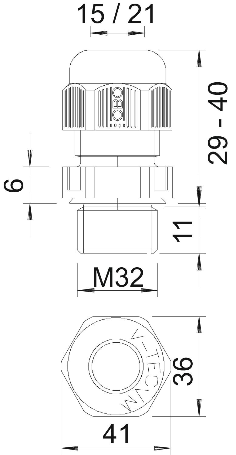 Opis proizvodaRobusna kablovska uvodnica sa metričkim priključnim navojem prema IEC 423 u dizajnu navrtke za visoke zahteve za zaptivenost. Vučno rasterećenje, zaštita od uvrtanja i zaptivenost u celom rasponu. Neoprenski zaptivni prsten. Umetak za stezanje od poliamida. Sa unapred montiranim zaptivnim prstenom na priključnom navoju, VDE-testirano prema DIN EN 50262, klasa zaštite IP68 na 5 bar/1h, temperaturni opseg -20 do +100°C.
