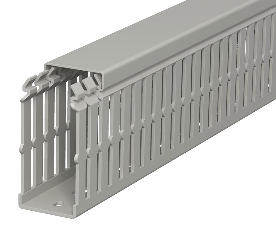 Opis proizvodaKanal za ožičenje prema DIN EN 50085-2-3 uključujući gornje i donje perforacije za horizontalno i vertikalno polaganje električnih kablova i vodova u kontrolnom ormaru. Verzija kao DIN kanal. Mreže se razbijaju bez alata. Ugradnja u ravni sa podom je moguća korišćenjem unapred određenih tačaka loma. Konusi u bočnim prorezima sprečavaju ispadanje kablova. Ispitano prema DIN EN 50085-2-3. Specijalne dužine na zahtev.