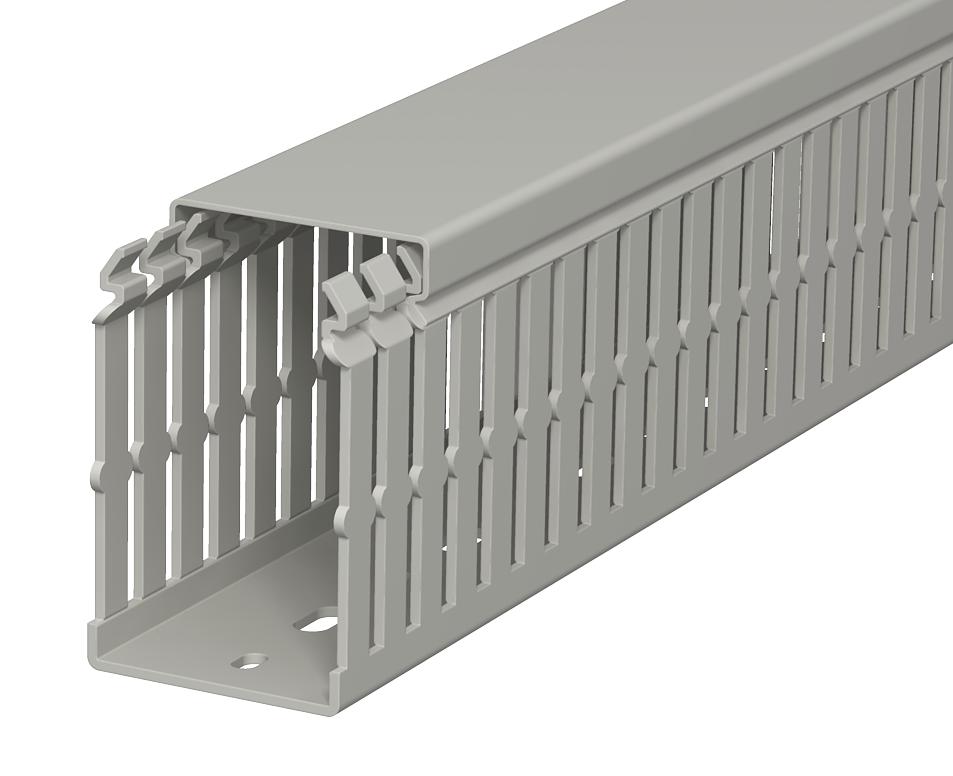 Opis proizvodaKanal za ožičenje prema DIN EN 50085-2-3 uključujući gornje i donje perforacije za horizontalno i vertikalno polaganje električnih kablova i vodova u kontrolnom ormaru. Verzija kao DIN kanal. Mreže se razbijaju bez alata. Ugradnja u ravni sa podom je moguća korišćenjem unapred određenih tačaka loma. Konusi u bočnim prorezima sprečavaju ispadanje kablova. Ispitano prema DIN EN 50085-2-3. Specijalne dužine na zahtev.
