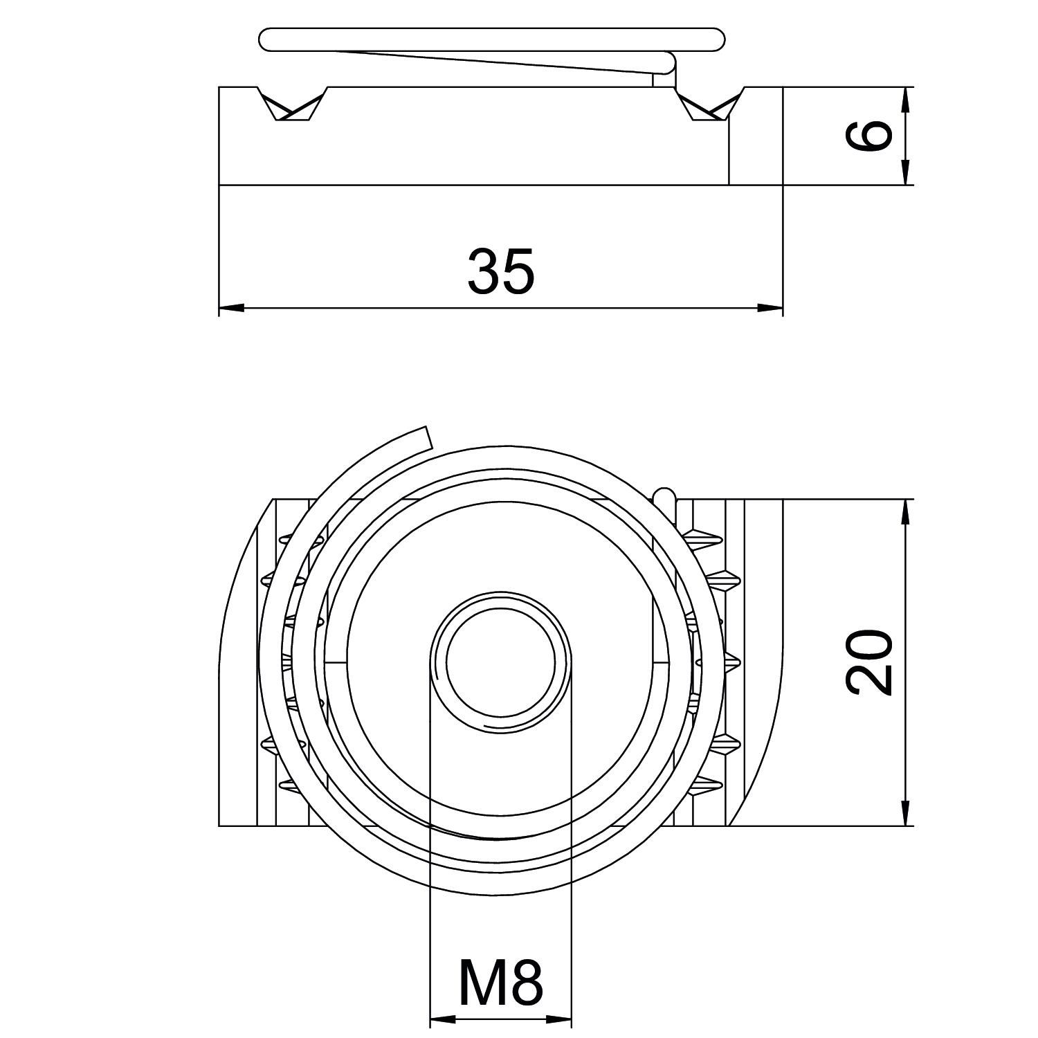 CO2 otisak (GWP) od kolevke do kapije 0,1523 kg CO2e / 1 Komad Dimenzija M8 Dimenzija H 6 mm Dužina 35 mm Materijal Oplemenjeni čelik, nerđajući Metrički navoj 8 Navoj M8 Površina svetlo, naknadno obrađeno Sa oprugom da Širina 20 mm Visina 6 mm - Svi tipovi