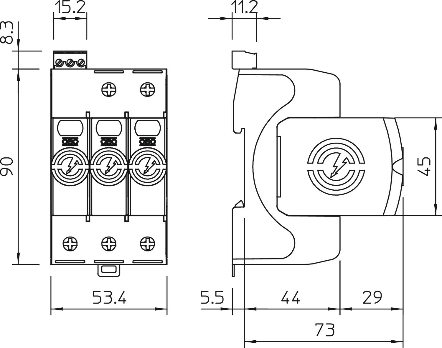• Modularni utični odvodnik prenapona sa razdvojnim sistemom i optičkim indikatorom statusa