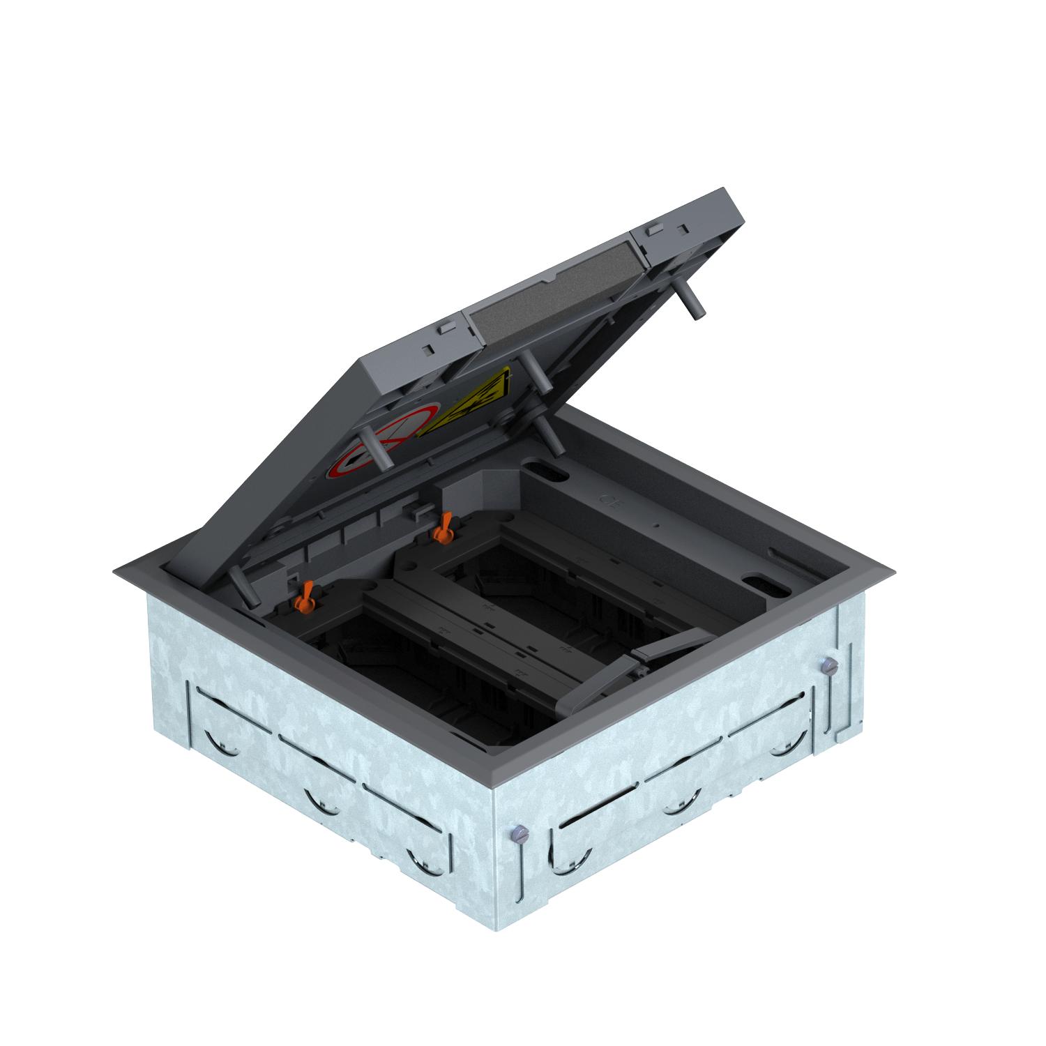 Opis proizvodaKvadratna instalaciona jedinica sa izvodom za kabl za upotrebu u suvo održavanim podovima u zatvorenom, sastoji se od kućišta i GES4-2 (boja <% AID: 79: Vrednost: RAM1;%>) sa dva univerzalna nosača. Ugradno kućište sa obeleženim otvorima za uvođenje cevi za provodnike (M25), podesivo na gornju ivicu košujice. Ugradno kućište se isporučuje zatvoreno maskirnim poklopcem. Kutija za uređaje može posle radova na košuljici da se stavi u nastali montažni otvor. Kružni žleb podne obloge u preklopnom poklopcu kutije za uređaje 3, 5, 8 ili 10 mm.