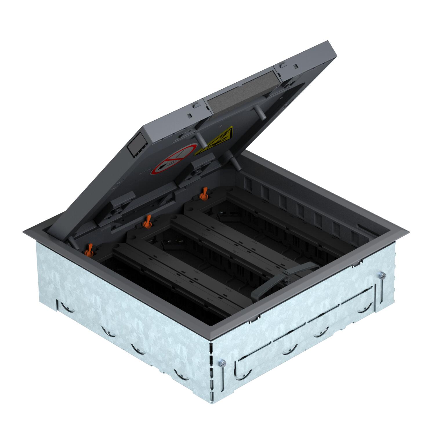 Opis proizvodaKvadratna instalaciona jedinica sa izvodom za kabl za upotrebu u suvo održavanim podovima u zatvorenom, sastoji se od kućišta i GES9-3 (boja <% AID: 79: Vrednost: RAM1;%>) sa dva univerzalna nosača UT4. Ugradno kućište sa obeleženim otvorima za uvođenje cevi za provodnike (M25), podesivo na gornju ivicu košujice. Ugradno kućište se isporučuje zatvoreno maskirnim poklopcem. Kutija za uređaje može posle radova na košuljici da se stavi u nastali montažni otvor. Kružni žleb podne obloge u preklopnom poklopcu kutije za uređaje 3, 5, 8 ili 10 mm.