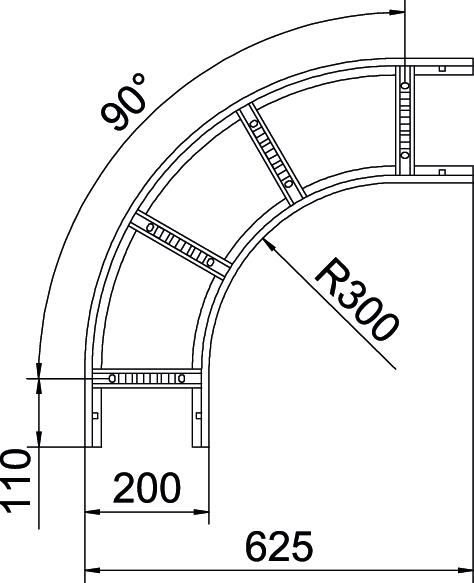 Opis proizvodaKrivina 90° horizonalno za sve lestvičaste kablovske regale za velike raspone sa bočnom visinom 110 mm.