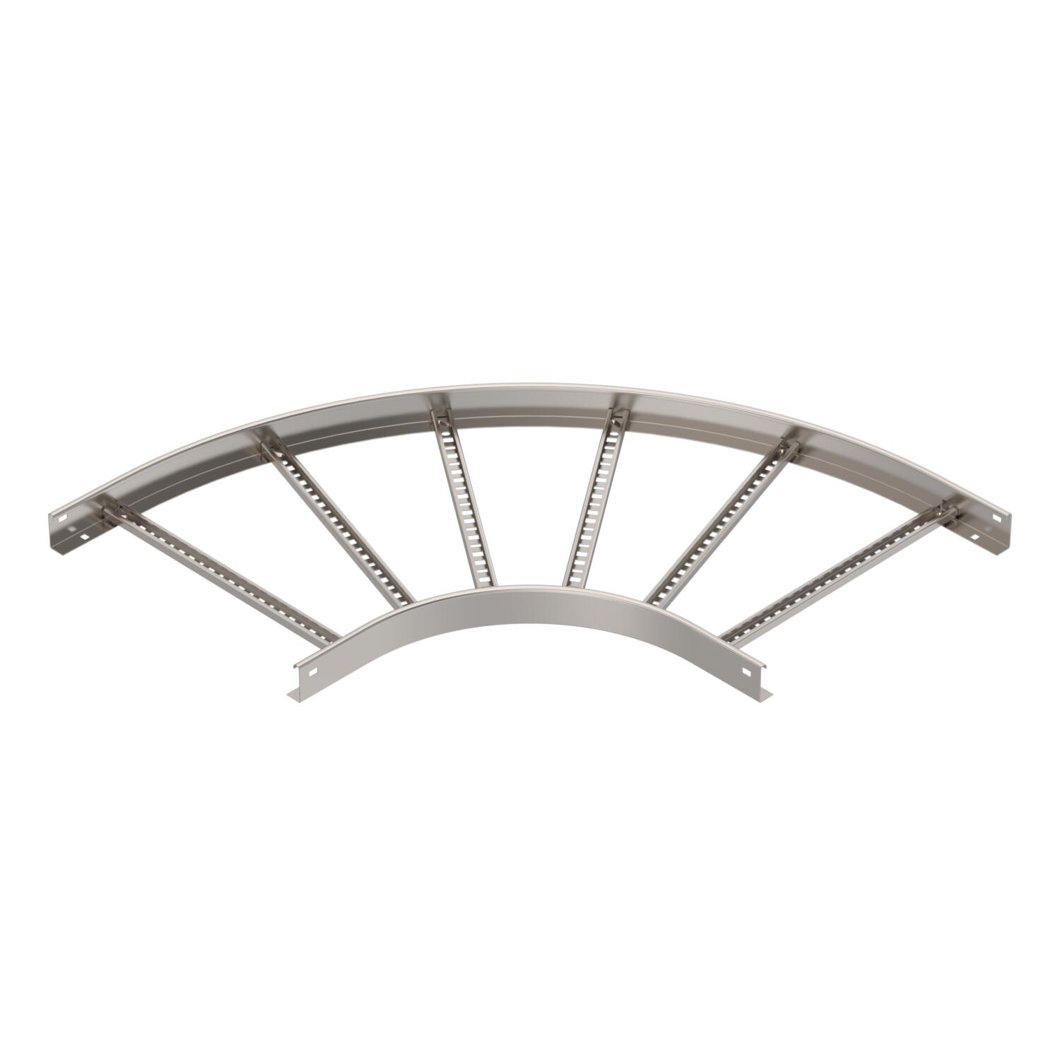 Opis proizvodaVodoravna krivina 90 ° sa zavarenim prečkama za sve tipove lestvičastih nosača kablova bočne visine 60 mm.