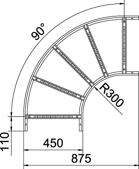 Opis proizvodaKrivina 90° horizonalno za sve lestvičaste kablovske regale za velike raspone sa bočnom visinom 110 mm.
