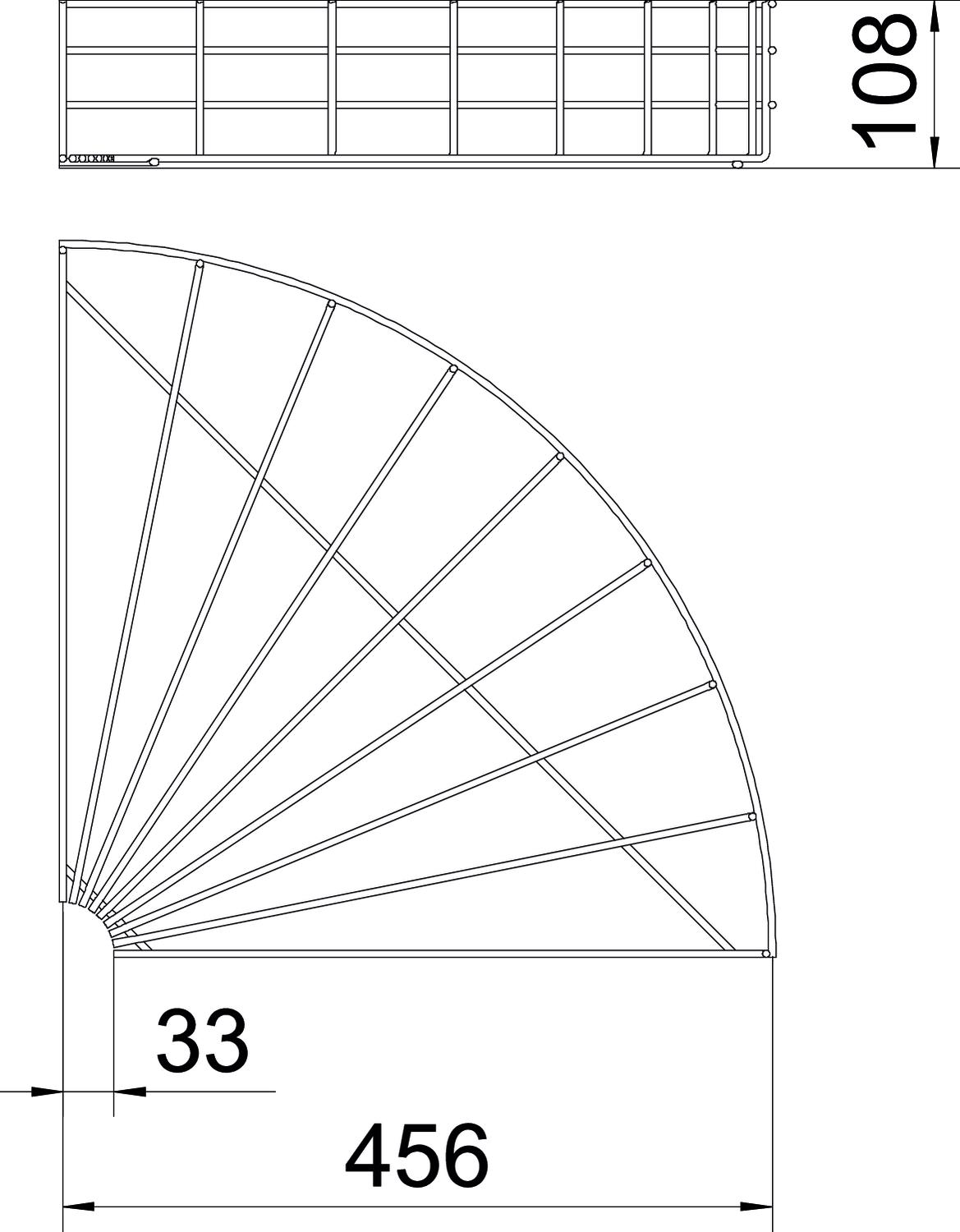 Opis proizvodaKrivina 90°, horizontalna, za mrežaste nosače kablova bočne visine 105 mm.