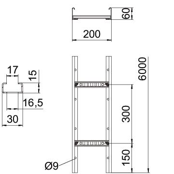 Opis proizvodaLestvičasti nosač kablova bočne visine 60 mm sa zavarenom, ka gore otvorenom C30-profil prečkom. Savijena bočna strana radi pojačanja i kao zaštita ivica. Pričvršćivanje na konzolu izvodi se sa steznim komadima tipa LKS 40. Mera proreza prečke iznosi 16,5 mm, odgovarajuća lučna obujmica je tipa 2056.