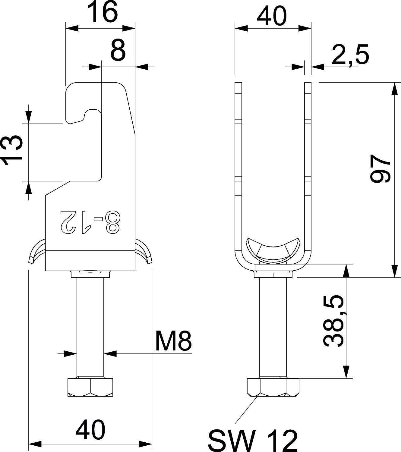 bez halogena ne Broj kablova/cevi 1 CO2 otisak (GWP) od kolevke do kapije 0,7847 kg CO₂e / 1 Komad Dimenzija 58-64mm Dimenzija B 70 mm Dimenzija C 40 mm Dimenzija G (mm) M8 Dimenzija H 99,5 mm Dimenzija L 30 mm Dimenzija t 2,5 mm Dodatak materijal nerajući čelik Dodatak površina netretirano Kvalitet materijala korita ostalo Maks. Zatezni momenat 5 Nm Materijal plemeniti čelik, nerđajući 1.4571 Materijal korita nerajući čelik Način montaže Profilna šina Otporno na udarce ne Površina svetlo, naknadno obrađeno Sa kontrakoritom ne Sa metalnim koritom da Sa plastičnim koritom ne za prečnik cevi maks. 63 mm za prečnik cevi min. 63 mm za šine širine proreza (sa intervalom) maks. 22 mm za šine širine proreza (sa intervalom) min. 18 mm Zatezna oblast D maks. 64 mm Zatezna oblast D min. 58 mm - Svi tipovi