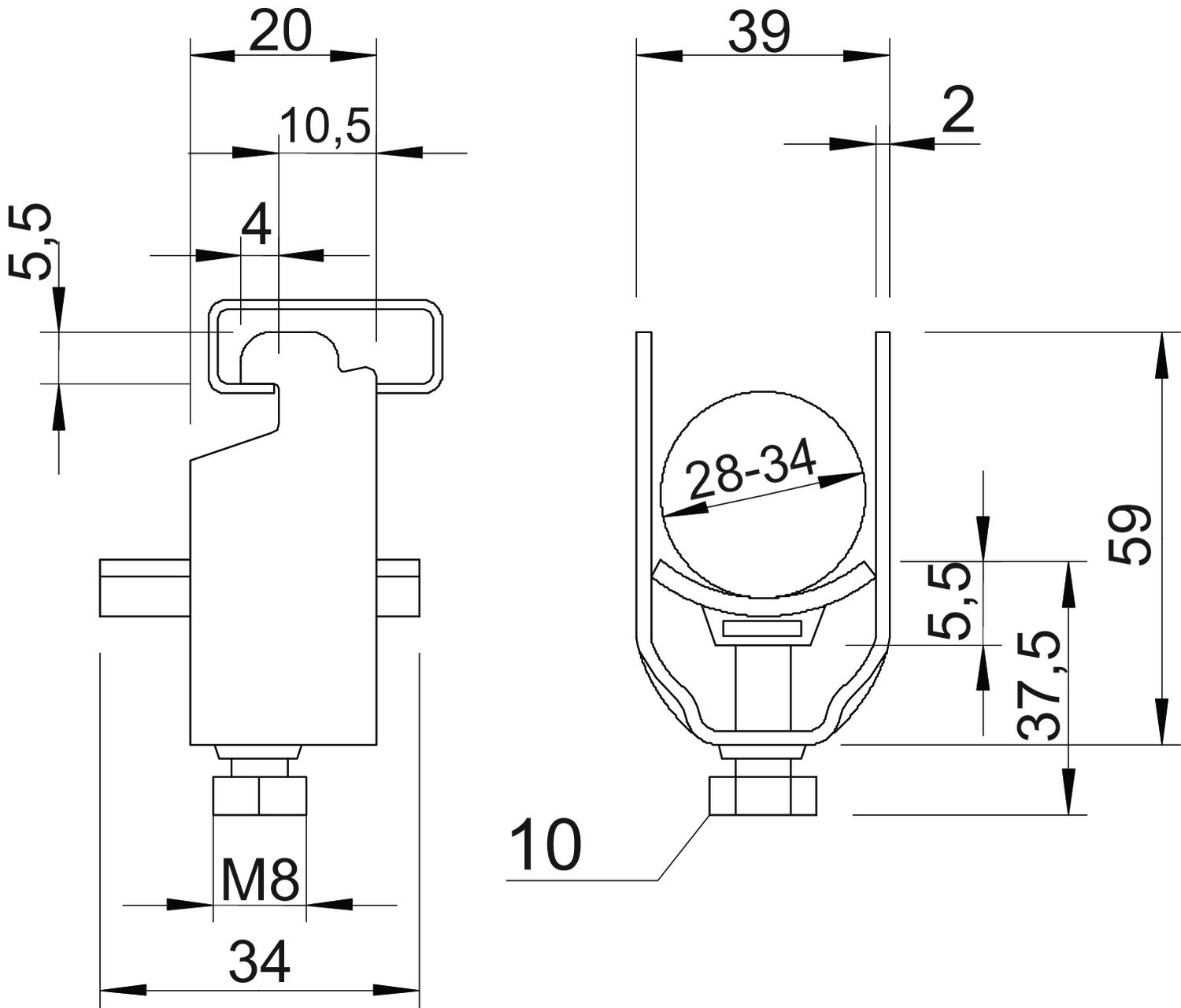 bez halogena da Broj kablova/cevi 1 CO2 otisak (GWP) od kolevke do kapije 0,1168 kg CO₂e / 1 Komad Dimenzija 28-34mm Dimenzija A 20 mm Dimenzija B 39 mm Dimenzija C 34 mm Dimenzija G (mm) M8 Dimenzija H 59 mm Dimenzija L 37,5 mm Dimenzija t 2 mm Dimenzija x 5,5 mm Dodatak materijal Čelik Dodatak površina toplo pocinkovano Kvalitet materijala korita Polipropilen Maks. Zatezni momenat 5 Nm Materijal Čelik Materijal korita Plastika Način montaže Profilna šina Otporno na udarce ne Površina vruće pocinkano utapanjem Sa kontrakoritom ne Sa metalnim koritom ne Sa plastičnim koritom da za 1 kabla D 37,5 za 1 kabla V 59 mm za 2 kabla H 97 mm za 2 kabla L 56,5 mm za 3 kabla D 56,5 mm za 3 kabla V 136 mm za prečnik cevi maks. 32 mm za prečnik cevi min. 32 mm za šine širine proreza (sa intervalom) maks. 12 mm za šine širine proreza (sa intervalom) min. 11 mm Zatezna oblast D maks. 34 mm Zatezna oblast D min. 28 mm - Svi tipovi