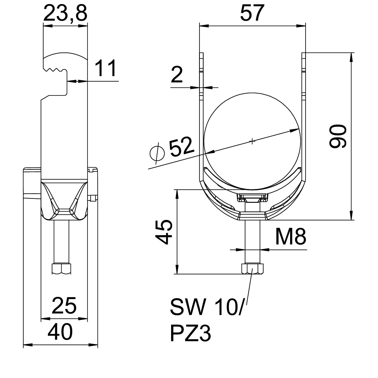 bez halogena da Broj kablova/cevi 1 CO2 otisak (GWP) od kolevke do kapije 0,4838 kg CO2e / 1 Komad Debljina lima 2 mm Dimenzija 46-52mm Dimenzija A 25 mm Dimenzija B 57 mm Dimenzija C 40 mm Dimenzija G (mm) M8 Dimenzija H 90 mm Dimenzija L 45 mm Dimenzija t 2 mm Dodatak materijal Aluminijum Dodatak površina netretirano Dužina 25 mm Dužina spoljne dimenzije 40 mm Maks. Zatezni momenat 5 Nm Materijal Aluminijum Način montaže ravan profil Navoj M8 Sa plastičnim koritom da Širina 57 mm Širina proreza 10 mm Visina 90 mm za prečnik cevi maks. 52 mm za prečnik cevi min. 46 mm Zatezna oblast D maks. 52 mm Zatezna oblast D min. 46 mm - Svi tipovi