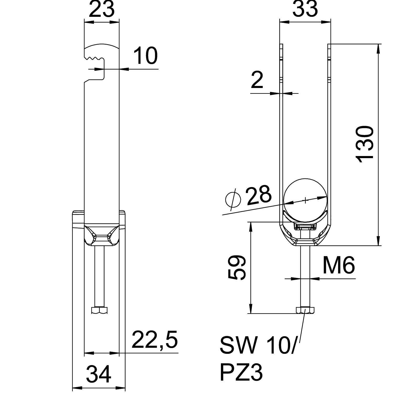 bez halogena da Broj kablova/cevi 3 CO2 otisak (GWP) od kolevke do kapije 0,2974 kg CO2e / 1 Komad Debljina lima 2 mm Dimenzija 22-28mm Dimenzija A 22,5 mm Dimenzija B 33 mm Dimenzija C 34 mm Dimenzija G (mm) M6 Dimenzija H 130 mm Dimenzija L 59 mm Dimenzija t 2 mm Dodatak materijal Čelik Dodatak površina toplo pocinkovano Dužina 22,5 mm Maks. Zatezni momenat 3 Nm Materijal Čelik Način montaže ravan profil Navoj M6 Površina vruće pocinkano utapanjem Sa plastičnim koritom da Širina 33 mm Širina proreza 10 mm Visina 130 mm za prečnik cevi maks. 28 mm za prečnik cevi min. 22 mm Zatezna oblast D maks. 28 mm Zatezna oblast D min. 22 mm - Svi tipovi