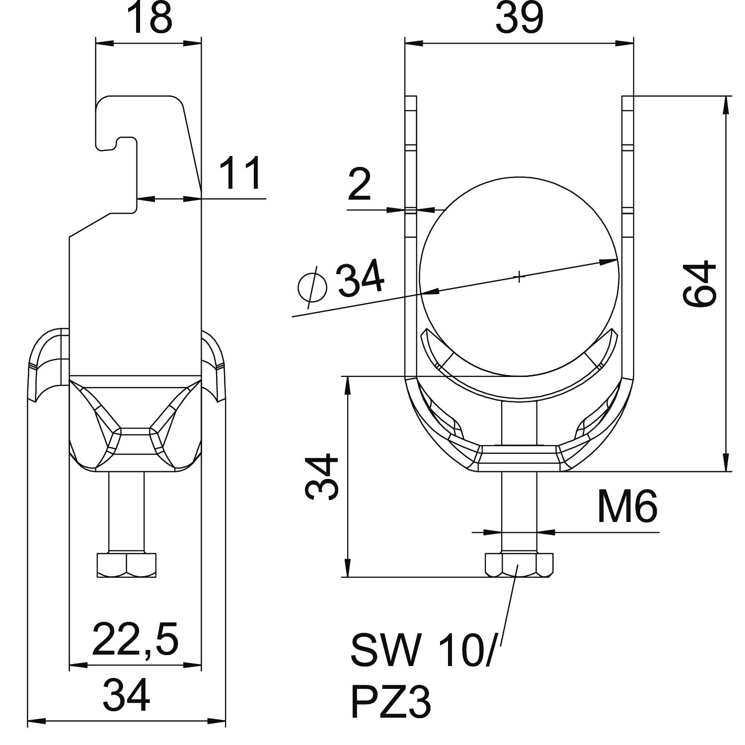 Opis proizvodaLučna obujmica sa U-stopom, metalno pritisno korito sa zaobljenim ivicama radi zaštite kabla. Za vertikalnu i horizontalnu montažu 1 pojedinačnog kabla na C-profilnu šinu. Za širinu proreza 18 - 22 mm. Pomoću zavrtnja sa 1-strukim navojem pričvrstiti na pritisno korito, univerzalna šestostrana glava zavrtnja SW10, sa ravnim ili krstastim prorezom. Pogodno za montažu u zatvorenom i na otvorenom prostoru. Preporučuje se upotreba kontrakadice