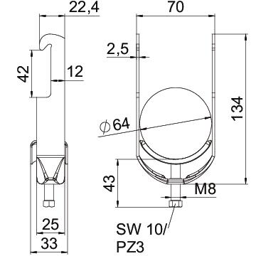 bez halogena da Broj kablova/cevi 1 CO2 otisak (GWP) od kolevke do kapije 0,4193 kg CO2e / 1 Komad Debljina lima 2,5 mm Dimenzija 58-64mm Dimenzija A 25 mm Dimenzija B 70 mm Dimenzija C 33 mm Dimenzija G (mm) M8 Dimenzija H 134 mm Dimenzija L 43 mm Dimenzija t 2,5 mm Dodatak materijal Čelik Dodatak površina toplo pocinkovano Dužina 25 mm Dužina spoljne dimenzije 33 mm Maks. Zatezni momenat 5 Nm Materijal Čelik Način montaže Ugaoni profil Navoj M8 Površina vruće pocinkano utapanjem Sa metalnim koritom da Širina 70 mm Širina proreza 10 mm Visina 134 mm za prečnik cevi maks. 64 mm za prečnik cevi min. 58 mm Zatezna oblast D maks. 64 mm Zatezna oblast D min. 58 mm - Svi tipovi